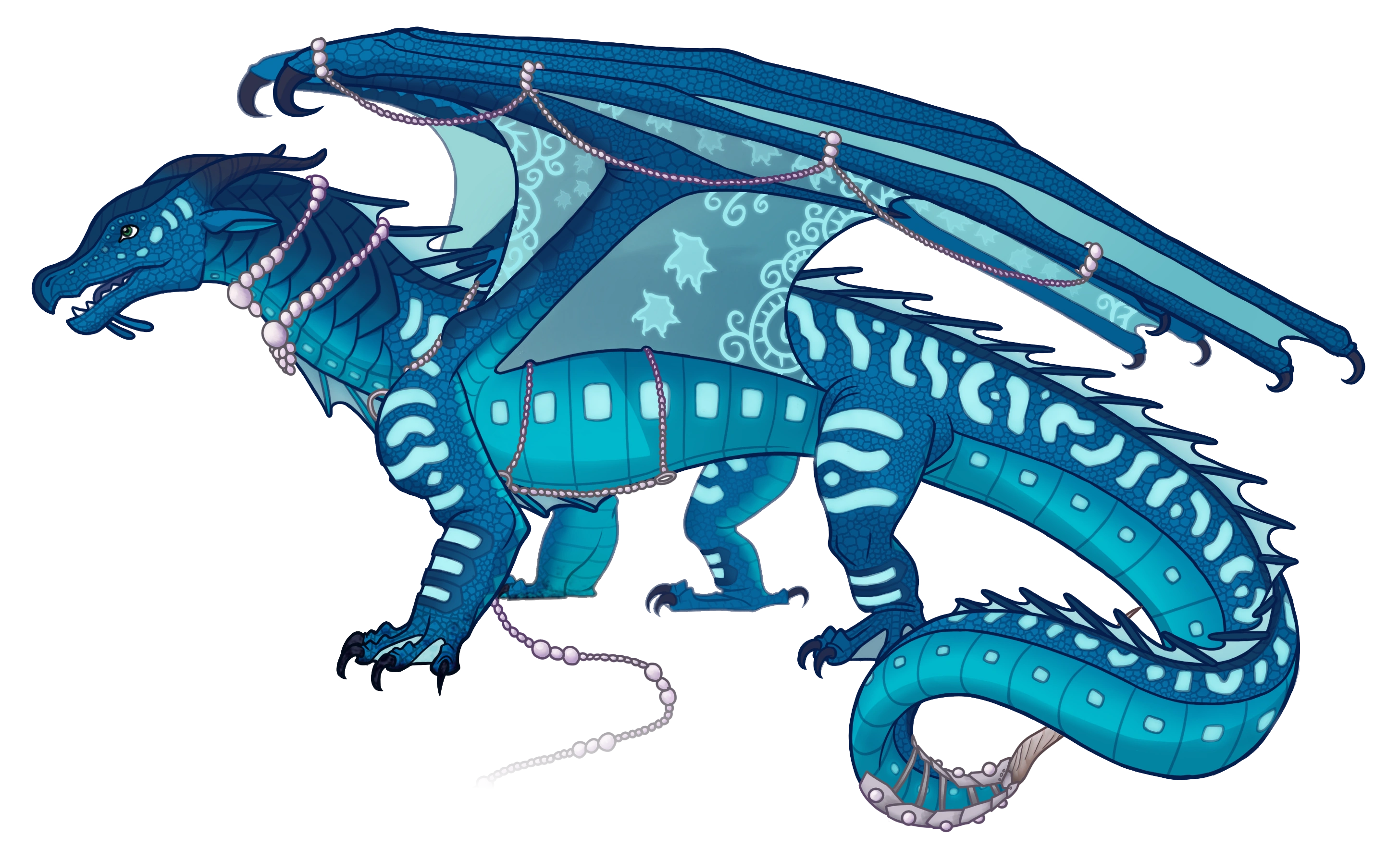 Corail a des écailles bleu foncé et turquoise. Elle a les griffes tachetées d'encre indélébile dont elle se sert pour écrire ses parchemins. Elle a des ailes bleues immenses, des yeux verts et a des colliers de perles autour de son cou, de ses ailes et de ses cornes ainsi qu'une pointe de corne de narval au bout de sa queue dont elle se sert comme arme (notamment contre sa fille Orca, la tuant par accident lors du combat pour le trône).