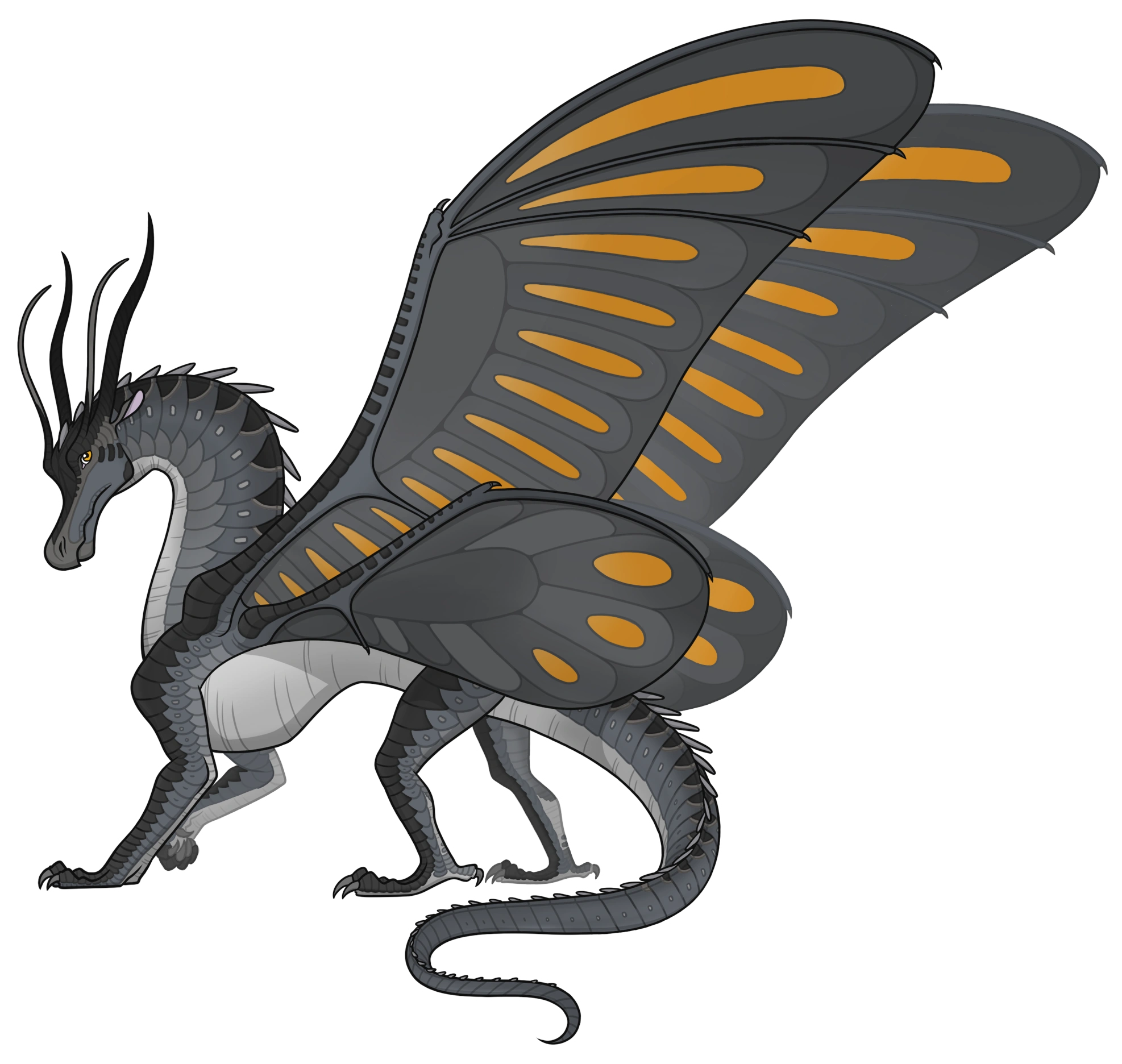 Griset est décrit comme ayant des taches d'or sur ses ailes, tandis que ses autres écailles présentent des nuances de gris, pâles et sombres se chevauchant, comme un chinchilla.