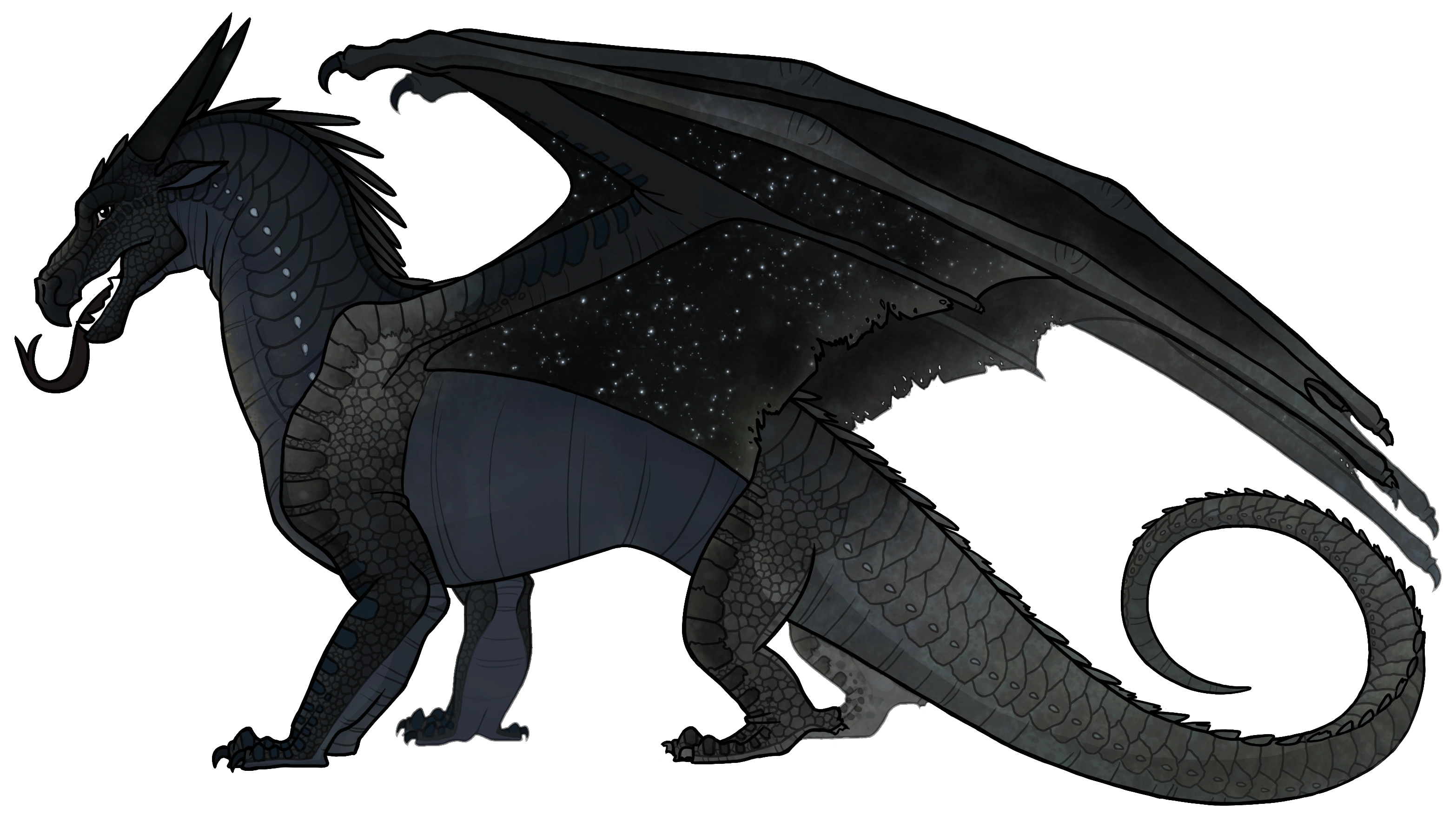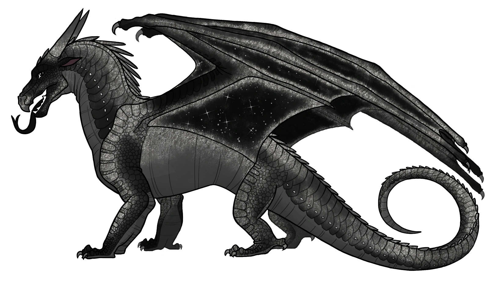 Dans La Nuit-la-plus-Claire, Épine a déclaré qu'il « était la couleur du ciel du désert la nuit ». Rocheux a été décrit comme gris et noir, avec des écailles brillantes. Il était « plus grand qu'Épine, mais pas énorme, nulle part près de la taille de Loracle ou de Fournaise